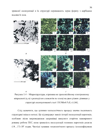 структурі експлуатованої сталі 13CrMo4-5 (б, г) [46].