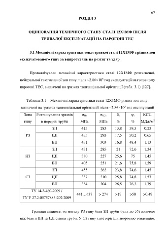 3.1 Механічні характеристики теплотривкої сталі 12Х1МФ з різних зон