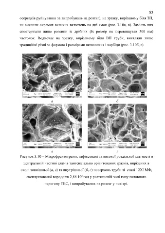 Рисунок 3.10 – Мікрофрактограми, зафіксовані за високої роздільної здатності в