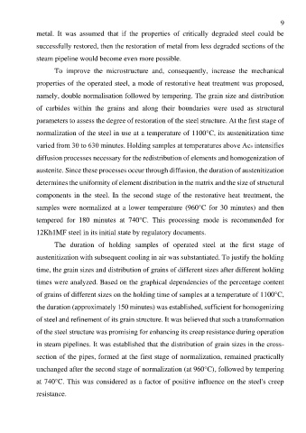 components in the steel. In the second stage of the restorative heat treatment, the