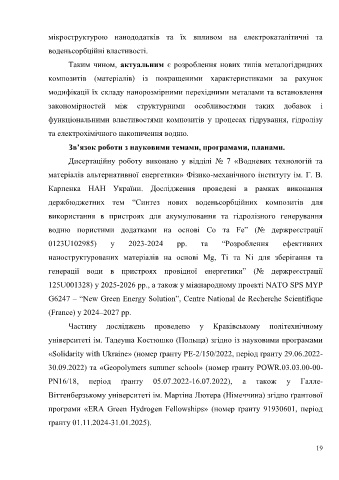 держбюджетних тем “Синтез нових воденьсорбційних композитів для