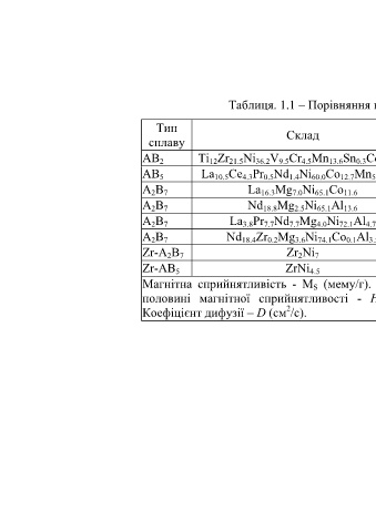 Таблиця. 1.1 – Порівняння властивостей кількох МГ сплавів.
