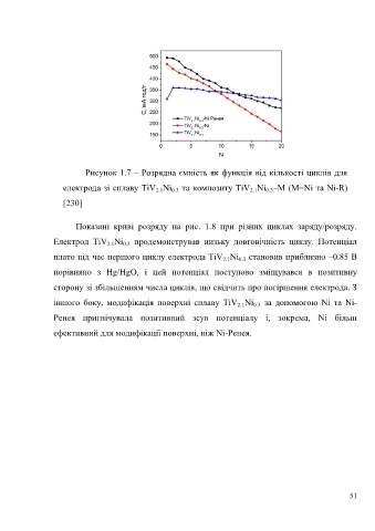 Рисунок 1.7 – Розрядна ємність як функція від кількості циклів для