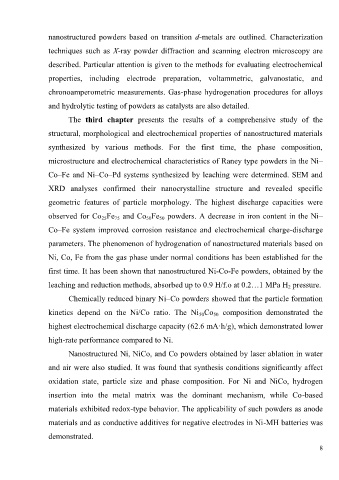 nanostructured powders based on transition d-metals are outlined. Characterization