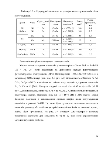 Таблиця 3.3 – Структурні параметри та розмір кристаліту порошків після